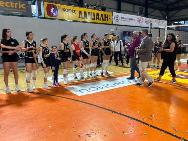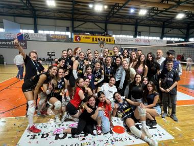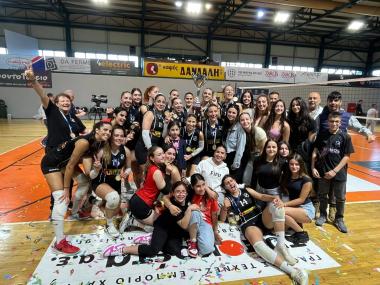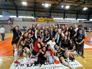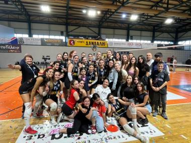 Τα κορίτσια του συλλόγου, κερδίζουν με 3-0 (25-21, 28-26, 25-19), στον τρίτο τελικό ανόδου την Αργυρούπολη και με 2-1 στις νίκες κερδίζουν τον τίτλο και την άνοδο στην Pre League Γυναικών.