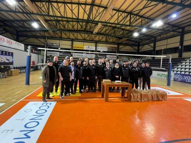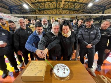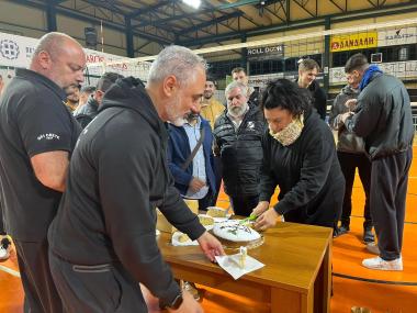 Στη συνέχεια ο πρόεδρος του ΟΦΗ, μαζί με τα μέλη του ΤΑΑ ΟΦΗ Γιάννη Χονδροζουμάκη και Μαρία Παπαδάκη, έκοψαν την πίτα.