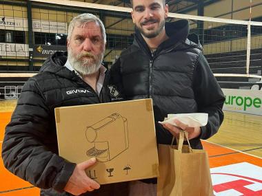 Τα πειράγματα στον Βασίλη Καφαντάρη, απο τους συμπαίκτες του δεν έλειψαν, ενώ κάποιοι του πρότειναν να ...αφήσει τη μηχανή στα αποδυτήρια, για να πίνουν όλοι καφέ!