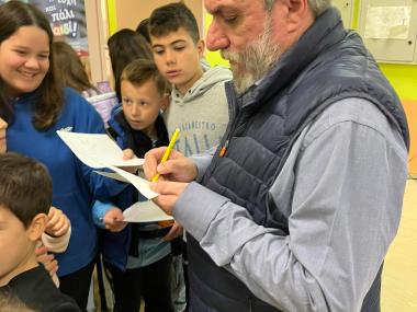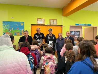 Στην επίσκεψη της αποστολής του ΟΦΗ στο 9ο Δημοτικό Σχολείο Αρτας, συμμετείχε ο αντιδήμαρχος αθλητισμού και παιδείας της περιοχής Γιάννης Κούλης.