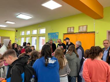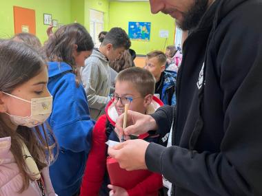 Υπέγραψαν αυτόγραφα στα μικρά παιδιά και χάρισαν αναμνηστικά της ομάδας.