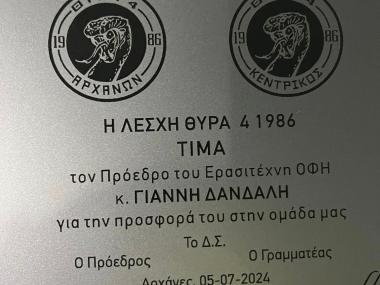 Η θύρα 4 και ο σύνδεσμος Αρχανών τίμησαν τον Γιάννη Δανδάλη: "Παράδειγμα σε όλη την Ελλάδα οι σύνδεσμοι του ΟΦΗ"