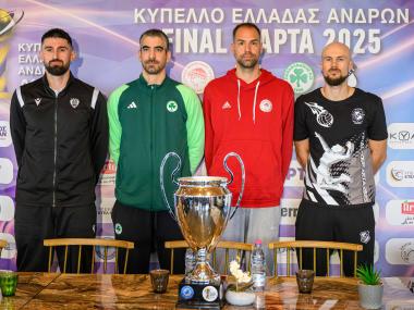 Οι αρχηγοί των τεσσάρων φιναλίστ του κυπέλλου Ελλάδος ανδρών στην συνέντευξη Τύπου του Φάιναλ-4, αφού ευχαρίστησαν τον Δήμο Αρταίων και την ΕΟΠΕ για τη φιλοξενία και τη διοργάνωση έδωσαν υπόσχεση για όμορφο θέαμα.