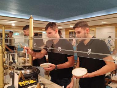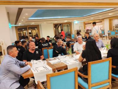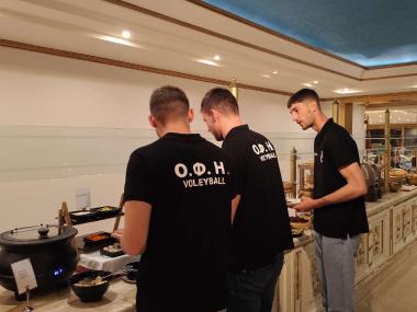 Οι παίκτες του ΟΦΗ, ξεναγήθηκαν στο εντυπωσιακό ξενοδοχείο, έβγαλαν αναμνηστικές φωτογραφίες και αμέσως μετά φιλοξενήθηκαν στο κεντρικό εστιατόριο, όπου ο Σεφ (και μεγάλος φίλος του ΟΦΗ) Μαρίνος Κοζυράκης, αλλά και η ομάδα του, έδωσαν, τον καλύτερο τους, εαυτό.