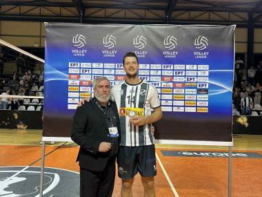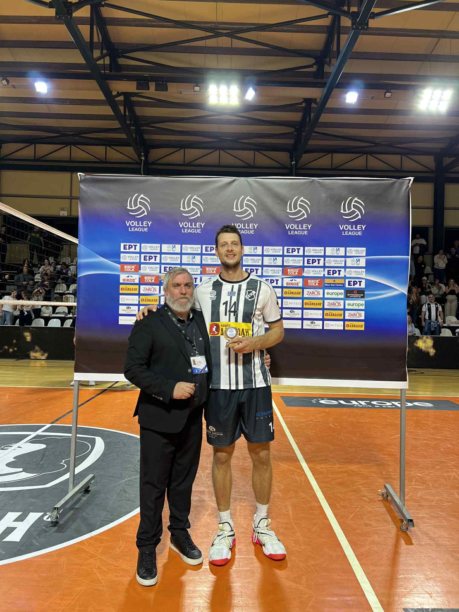 MVP της αναμέτρησης, ο Ματέι Μιχαΐλοβιτς, με 15 π και ποσοστό στην επίθεση 72% (13/18, 2 άσσους). Την βράβευση έκανε ο πρόεδρος του ΟΦΗ, Γιάννης Δανδάλης.