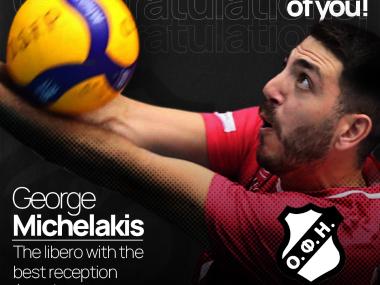 Ο λίμπερο του ΟΦΗ Γιώργος Μιχελάκης, ολοκλήρωσε την κανονική περίοδο, με 64% υποδοχή, που είναι το υψηλότερο ποσοστό, απο όλα τα λίμπερο της κατηγορίας.