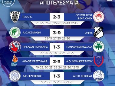 Αναλυτικά τα αποτελέσματα, η βαθμολογία και η επόμενη αγωνιστική στην Volley League: