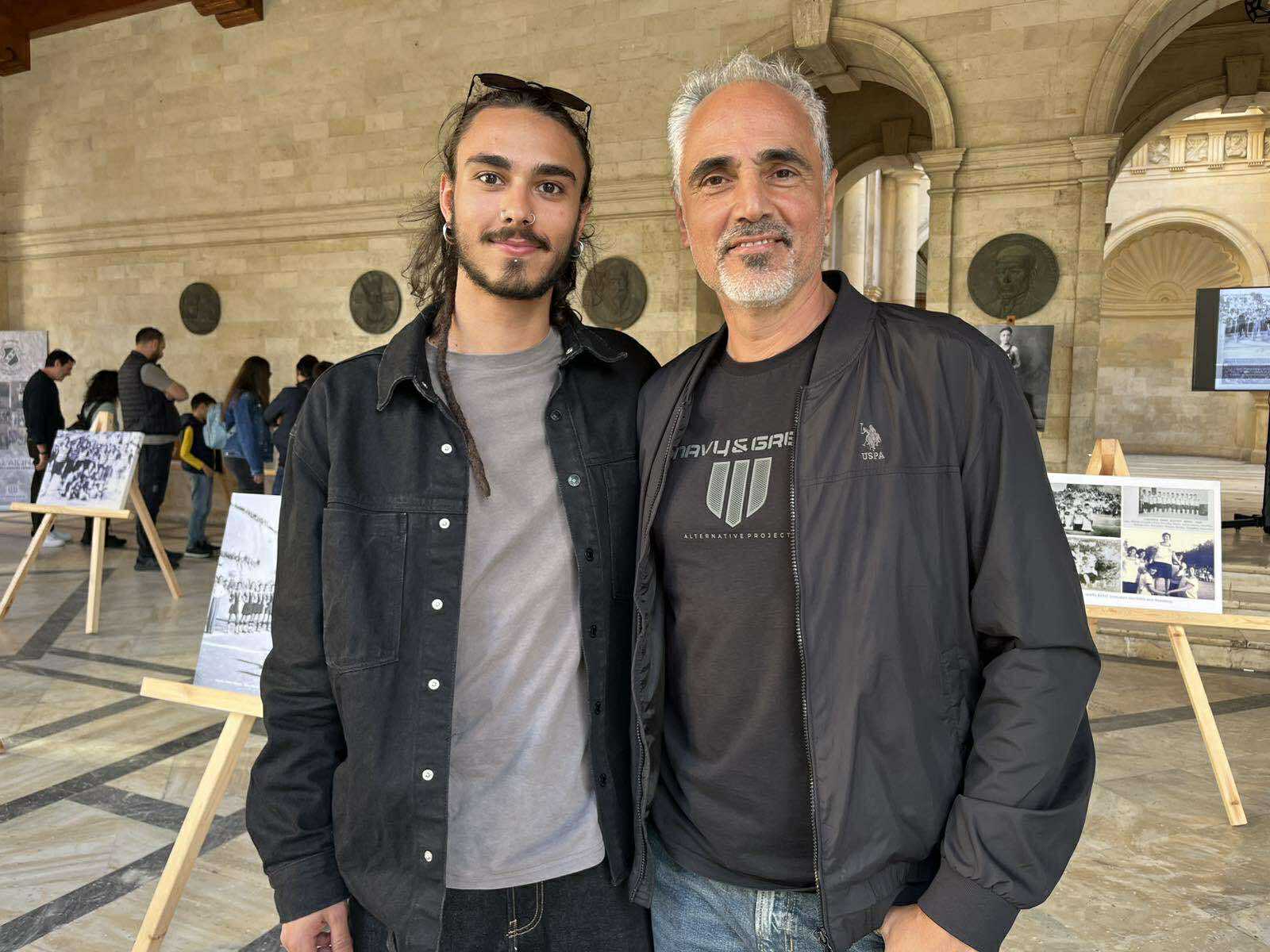 Ο προπονητής της ομάδας βόλεϊ του ΟΦΗ Γιάννης Καλμαζίδης, με τον υιό του Όμηρο, επισκέφθηκαν την έκθεση και είδαν με ενδιαφέρον τις ιστορικές φωτογραφίες από το τμήμα βόλεϊ του ΟΦΗ με την πρώτη ομάδα βόλεϊ γυναικών το 1928 και φωτογραφίες της ανδρικής ομάδας από την δεκαετία του ‘70.