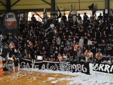 Πριν την έναρξη του αγώνα, οι φίλαθλοι του ΟΦΗ, πέταξαν χιλιάδες χαρτάκια, στον αέρα, σε μια εντυπωσιακή στιγμή.