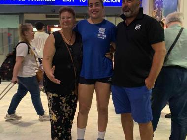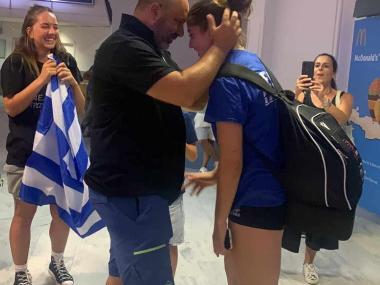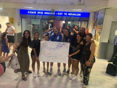 Η 15χρονη αθλήτρια του ΟΦΗ, δάκρυσε στην αίθουσα αφίξεων στο αεροδρόμιο Νίκος Καζαντζάκης του Ηρακλείου, όταν αντίκρισε την θερμή υποδοχή που της επιφύλαξαν, οι δικοί της άνθρωποι.