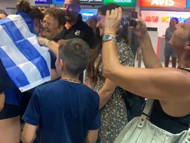 Αμέσως "χάθηκε" στις αγκαλιές των συγγενικών της προσώπων, αλλά και των συναθλητριών της, στον ΟΦΗ, που την περίμεναν μεσάνυχτα στο αεροδρόμιο, για να την συγχαρούν για τις συγκλονιστικές στιγμές, που έζησε με την Εθνική ομάδα