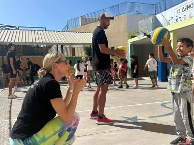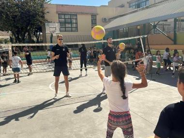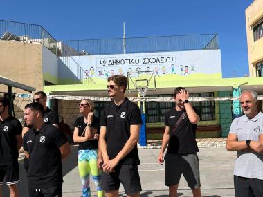Η σκυτάλη δόθηκε στους παίκτες του ΟΦΗ, οι οποίοι έστησαν τον φιλέ στην αυλή του σχολείου, πήραν τις μπάλες και ξεκίνησαν το παιχνίδι με τους ενθουσιασμένους μικρούς μαθητές, οι οποίοι είχαν την ευκαιρία να μάθουν τεχνικές και τα μυστικά του βόλεϊ.