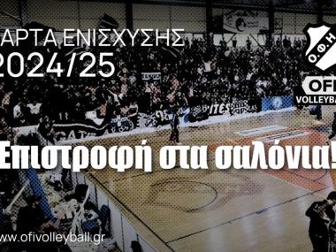 Με σύνθημα τη φράση "επιστροφή στα σαλόνια!" και "ελάτε μαζί μας, να γράψουμε ιστορία!" βγήκαν σε κυκλοφορία, τα εισιτήρια διαρκείας της ανδρικής ομάδας βόλεϊ του ΟΦΗ, για τη σεζόν 2024-25 στην Volley League.